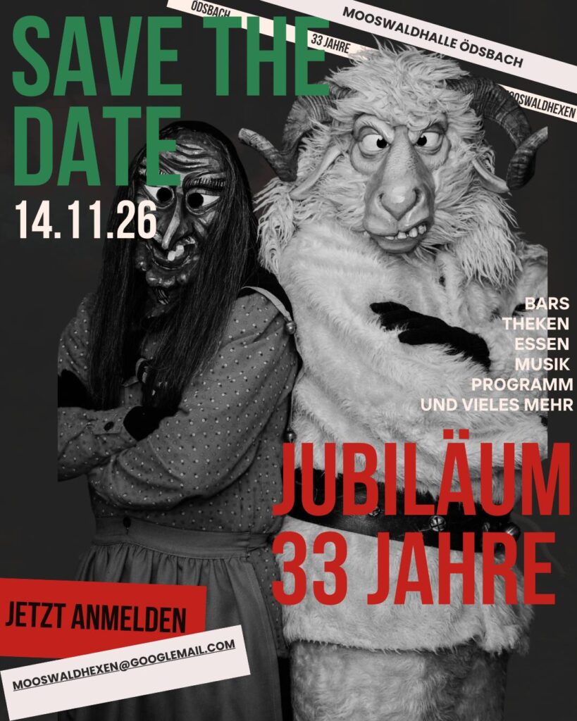 Anmeldung zum 33ten Jubiläum Mooswaldhexen 1994 e.V. am 14.11.2026 Bitte aktiviere JavaScript in deinem Browser, um dieses Formular fertigzustellen.Bitte aktiviere JavaScript in deinem Browser, um dieses Formular fertigzustellen.Name des Vereins * Aufführung Auftritts: Wir: Name Ansprechpartner *Straße & Hausnummer *PLZ & Ort *E-Mail-Adresse *Telefon (für eventl. Rückfragen) *Wir: *nehmen teil 🙂nehmen nicht teil 🙁Wir reisen an *mit dem Bus *mit dem AutoAuf dem Besen und zu Fuß* Keine Busparkplätze an der Halle! Infos zu nahegelegenen Parkplätzen folgen per Mail Personenanzahl: Aktuelle Personen: 1 An Eurem Programm beteiligen wir uns: *--- Auswahl treffen ---NichtBrauchtumstanzShowtanzGardetanzMusikeinlage (max. 20 Min.)Name und Telefonnummer des Tanz- bzw. Musikleiters:Kurze Beschreibung Eures Auftritts:Dauer der Aufführung in Minuten:Weitere Infos:Datenschutz: *Mit dem Absenden des Formulars willige ich in die Verarbeitung meiner Daten im Rahmen der DSGVO zur Bearbeitung meines Anliegens ein.Anmeldung absenden